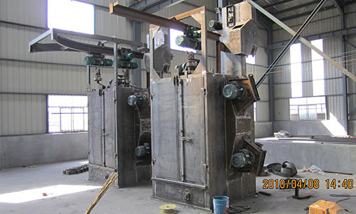 吊鉤A在進(jìn)入拋丸清理室進(jìn)行拋丸的時(shí)候,吊鉤B可以在外面裝卸。