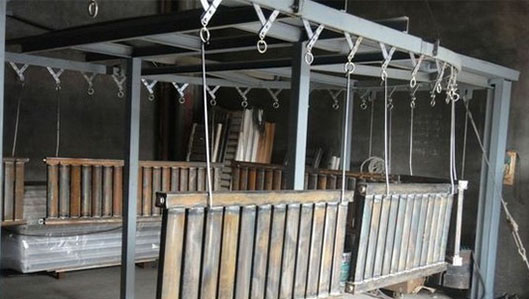 產量較小的朋友,可以采用吊鉤式拋丸機,一次清理多組。