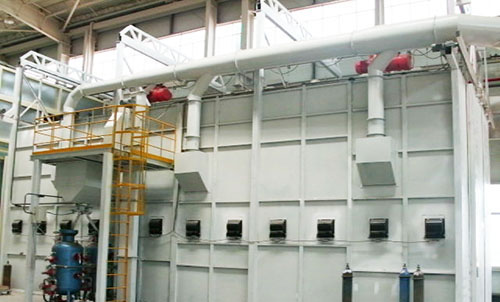噴砂房主要用于中、大型結(jié)構(gòu)比較復雜的工件表面的清砂、去除氧化皮等的處理。